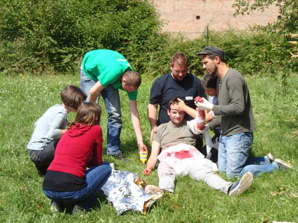 Zum Abschluss der Juleica Ausbildung zählt auch ein Erste Hilfe Kurs, der aber von allen anderen auch zur Auffrischung besucht werden kann.