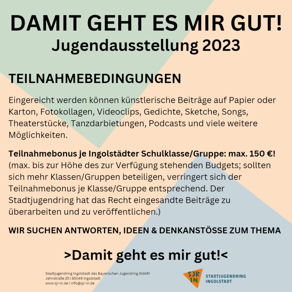 Bis 2019 veranstaltete der Stadtjugendring Ingolstadt immer eine Poster- und Ideen-Aktion an den Ingolstädter Schulen und Jugendeinrichtungen. Dazu wurden jugendrelevante Themen oder Problemstellungen wie zum Beispiel Gewalt, Rauchen, Alkohol oder Magersucht, aber auch Themen wie Heimat, Flucht oder das Handy der Zukunft aufgegriffen und von den Jugendlichen künstlerisch/gestalterisch bearbeitet. Ziel: Die jungen Menschen setzen sich in der Gruppe mit aktuellen Jugendthemen auseinander.